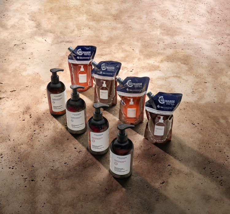 Сохраните окружающую среду с помощью экономичных и экологических сменных блоков ваших любимых средств по уходу за волосами L'OCCITANE.