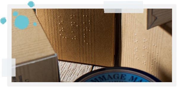 Мы начали использовать написание названий наших средств шрифтом Брайля (на английском, наиболее широко распространенном языке мира) в 1990-х и продолжаем делать это по сей день! Это не только способ сделать наши средства более доступными для людей с проблемами зрения, но также возможность привлечь внимание общественности к проблеме потери зрения.