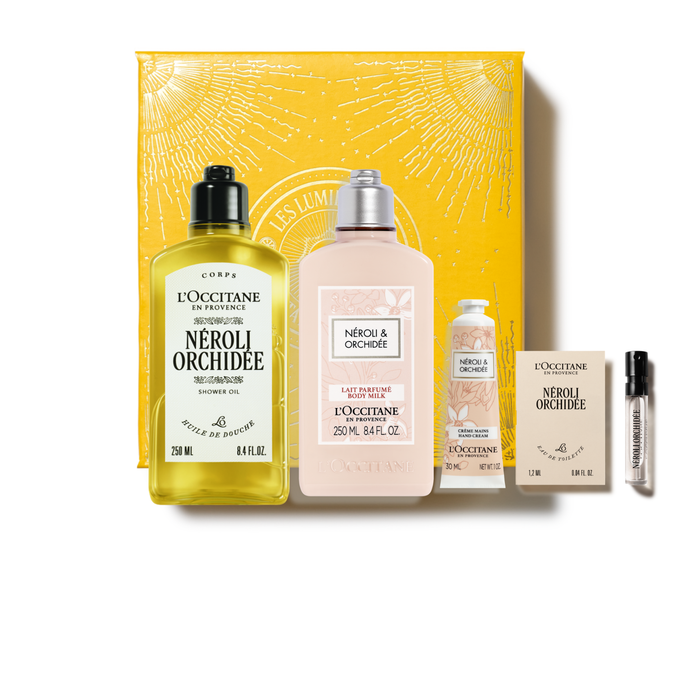 Нероли и Орхидея - гармоничная комбинация двух белых цветков с разных континентов: эфирное масло средиземноморских цветов Нероли и абсолют экзотической Мадагаскарской Орхидеи. Состав: гель для душа 250мл,крем для рук 30мл,молочко для тела 250мл, туалетная вода 12 мл.
